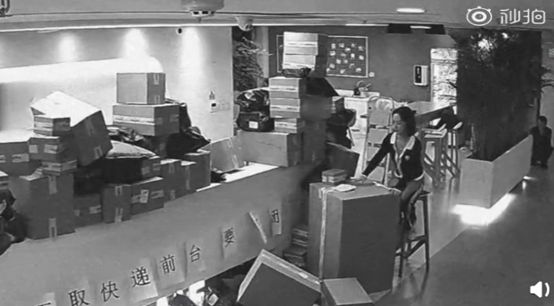 1、公司前台在快递堆里办公 临近双十一,杭州一公司前台被火速送达的快递包裹逐渐淹没,在失去可以栖身的工位后,愤而贴出“再不取快递,前台要自闭”的告示,这一幕被监控录像完整记录。(@封面新闻)