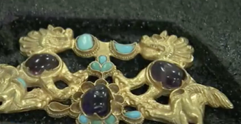 4、“九层妖塔”原型古墓出土大量精美金银器 1982年,青海省海西州陆续发现的“热水墓群”中的“血渭一号墓”据称为某小说中“九层妖塔”原型,最近新出土了千余件金银器皿,十分精美。考古专家还发现了一枚印章,上面有像骆驼的痕迹。(中国新闻网)