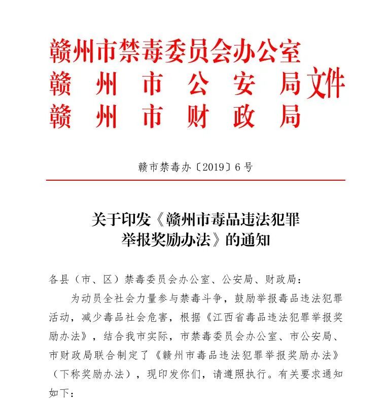 赣州多地出台政策,涉毒举报最高赏金100万。