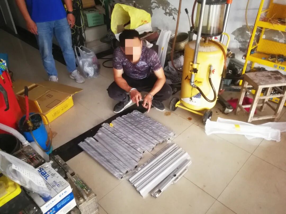 5月14日中午12时许,民警成功在中山市小榄镇轻轨站附近将犯罪嫌疑人万某新、罗某当场抓获,现场查获仿秃鹰气枪和枪支配件一批。而另一组民警在万某新位于东莞市的住处内,查获气枪支配件一批,并抓获其他嫌疑人3人。