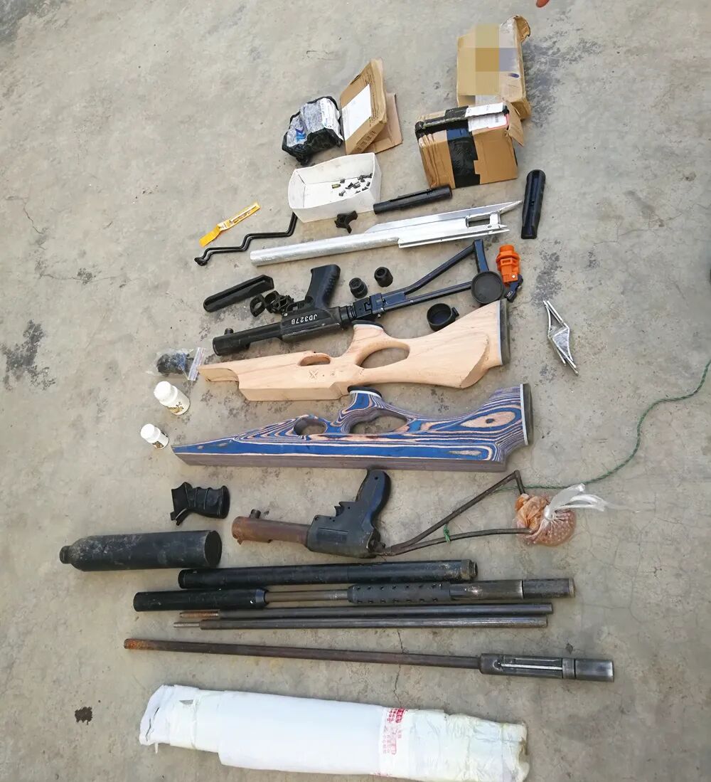 经数日奋战,转战千里,民警成功在江苏抓捕上家曹某懂,缴获气枪支配件一批;在云南万某新老家的菜地及万某新下家共缴获枪支3支,铅弹800余枚及枪支配件一批。