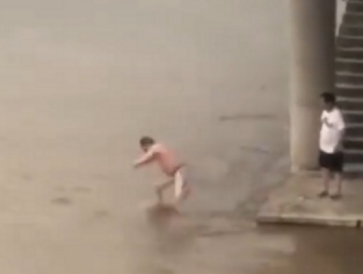 2、打赌跳江抱木头漂流10公里 重庆迎洪峰江水大涨,49岁男子黄某饮酒后与朋友打赌跳江游泳,经几人劝说不听,执意从磁器口附近跳入嘉陵江中。因水流太急,黄某顺水漂流,最后抱着两块木头在牛角沱被重庆水警救起,他还让民警捞起木头作为见证。(央视新闻)